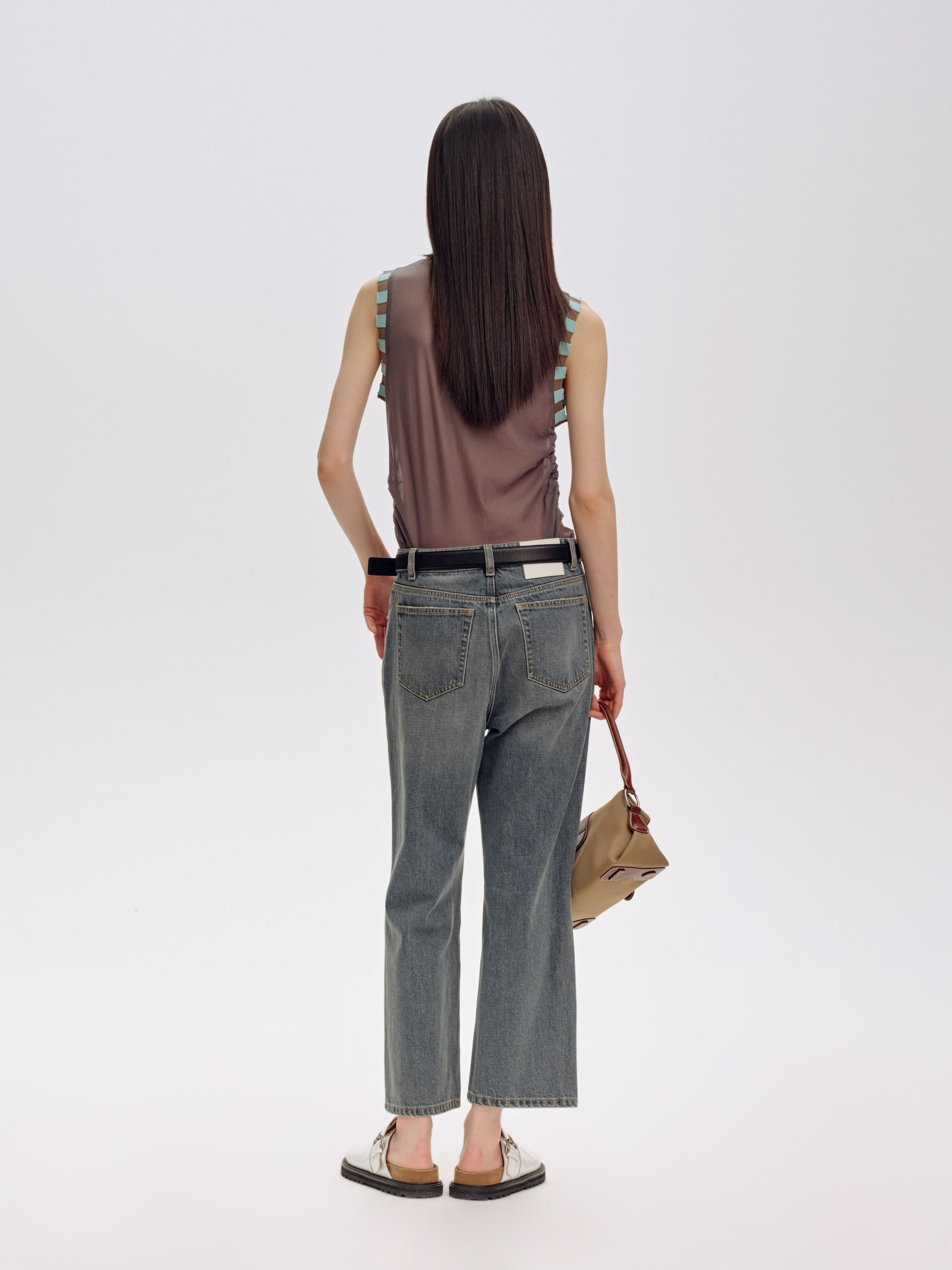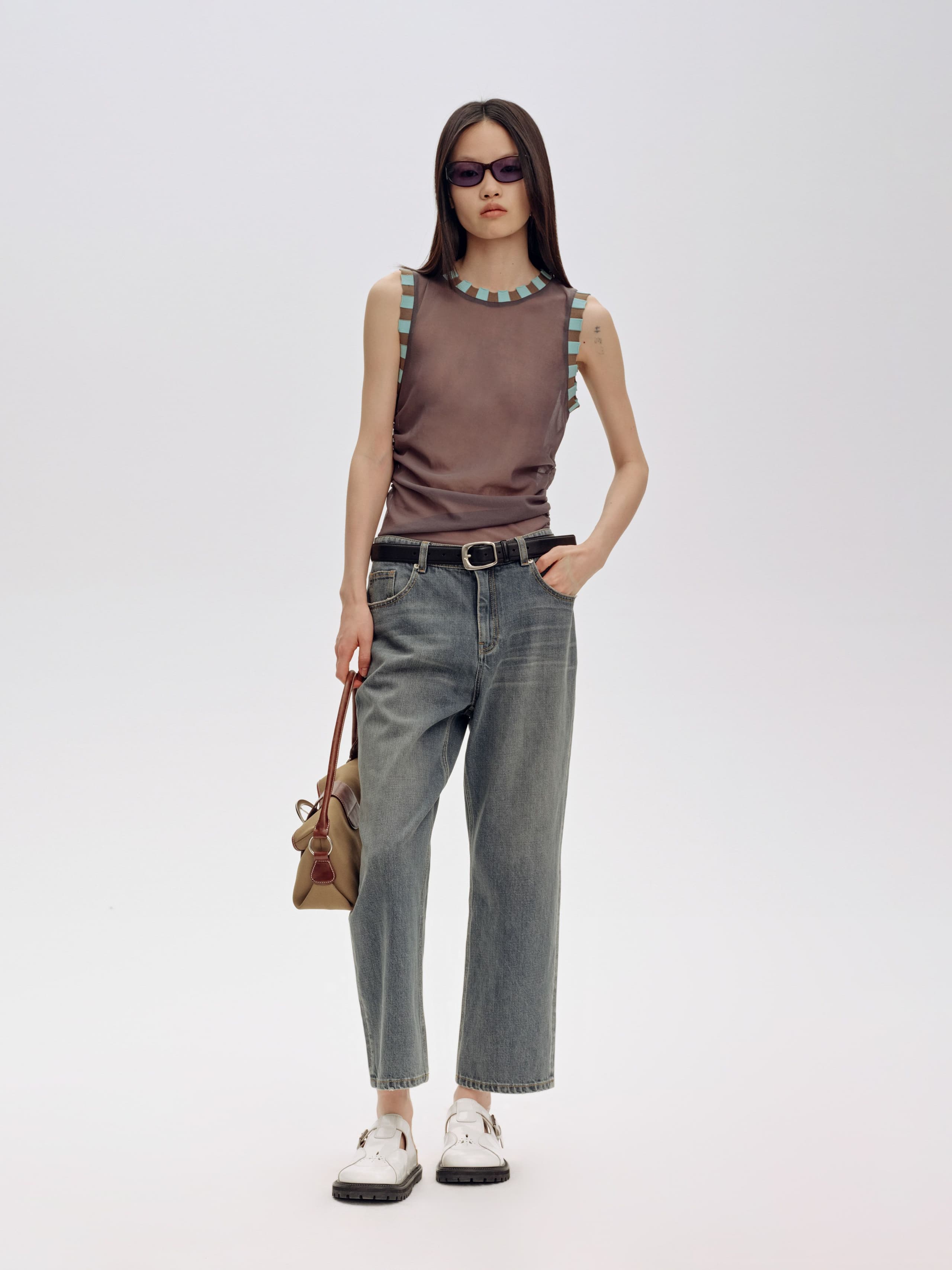 A bold and easy-to-wear tee with a boxy silhouette and playful proportions. Made from 100% cotton, it features an exclusive double-sided stripe design in vibrant contrasting colors. The ribbed knit collar adds a structured touch, while the high-low hem and side slits create a relaxed yet stylish finish.