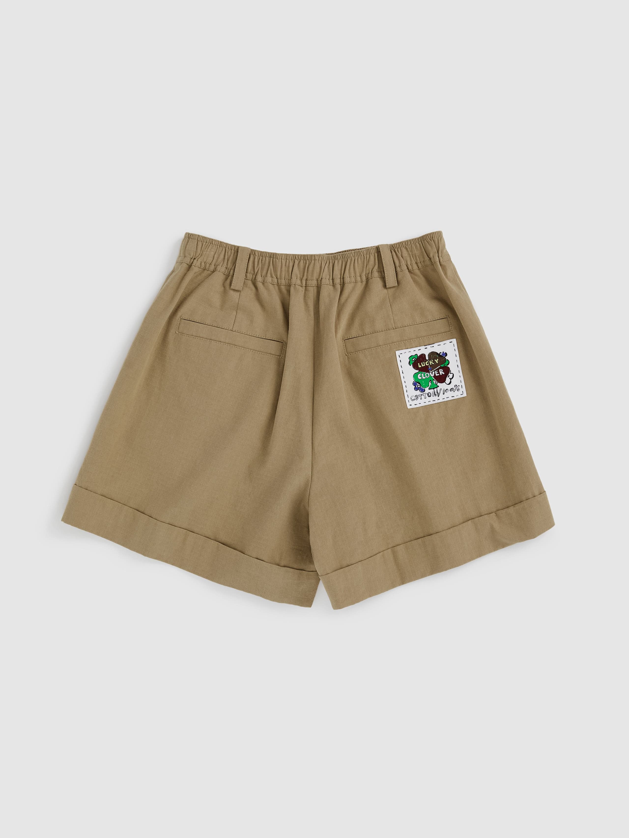The Elastic Waist Cotton Shorts are designed for effortless comfort with a lightweight, non-stretch fabric and a relaxed fit. Featuring an elastic waistband for ease of wear, these shorts include a decorative fly, contrast stitching, and a lucky clover woven label on the back pocket for a playful touch.