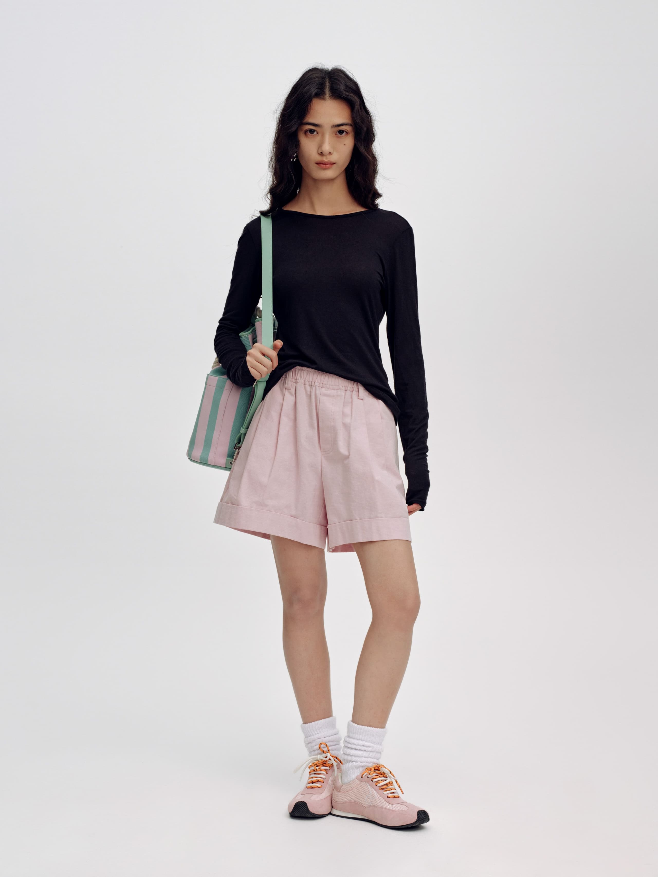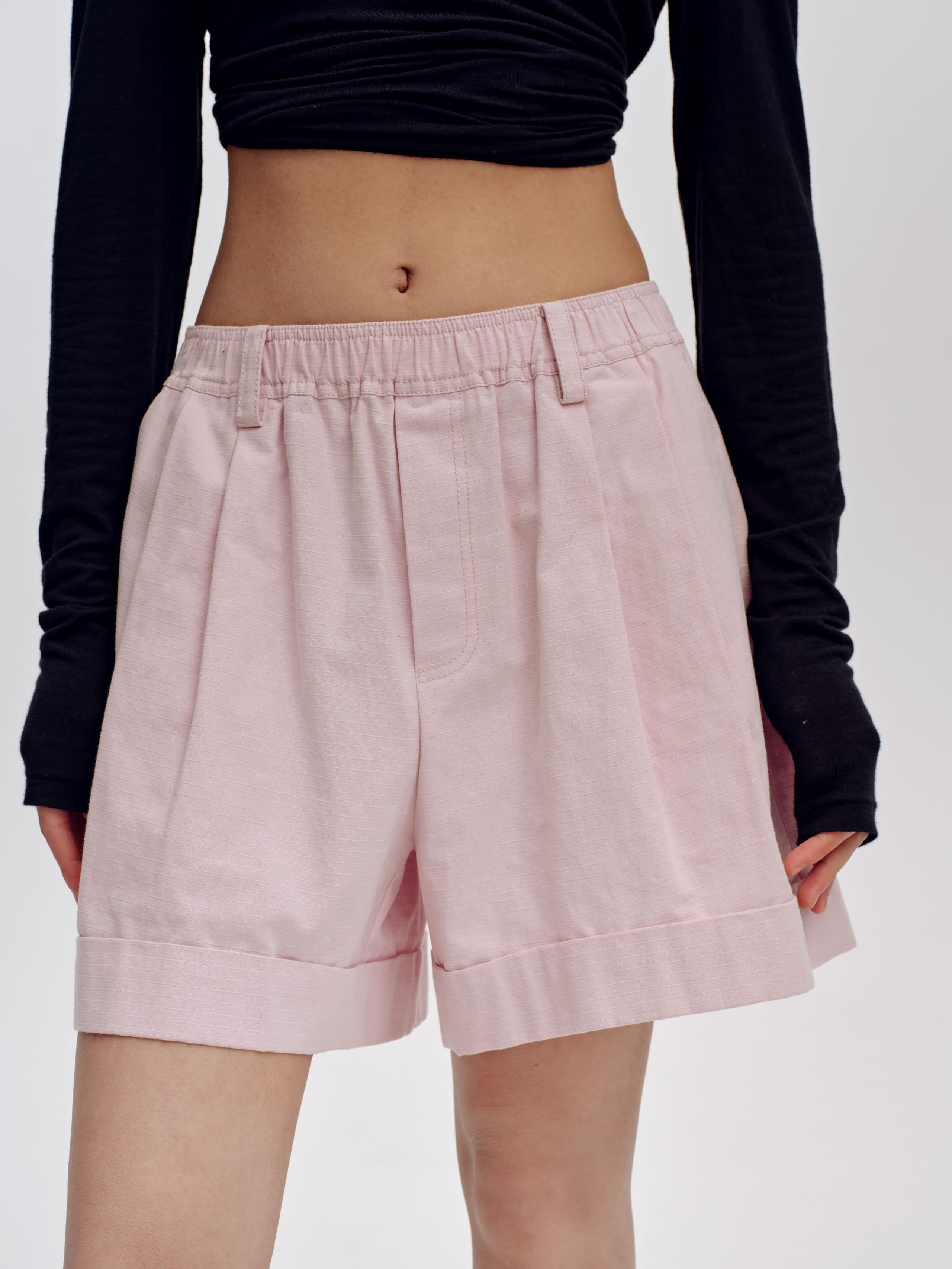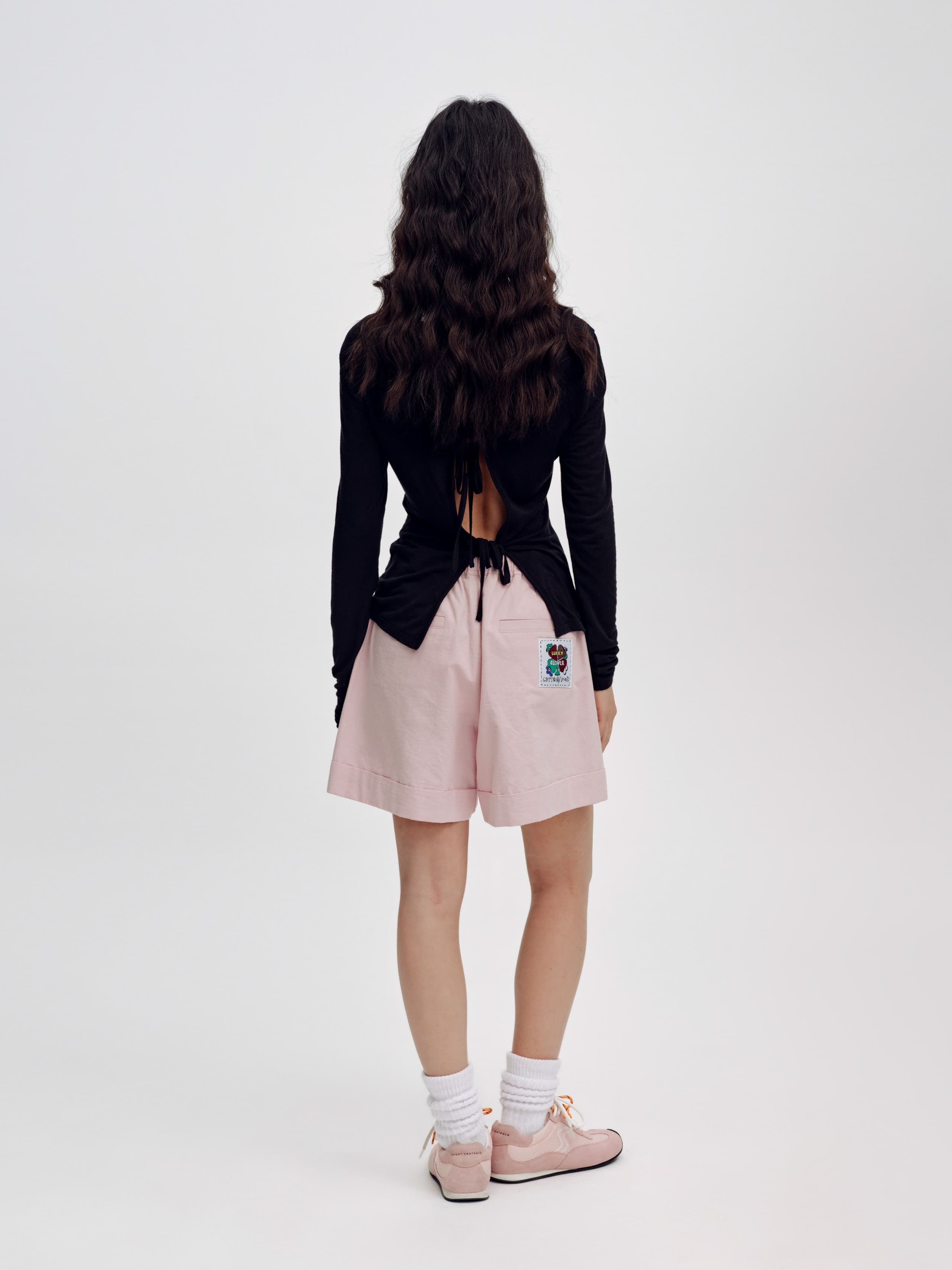 The Elastic Waist Cotton Shorts are designed for effortless comfort with a lightweight, non-stretch fabric and a relaxed fit. Featuring an elastic waistband for ease of wear, these shorts include a decorative fly, contrast stitching, and a lucky clover woven label on the back pocket for a playful touch.