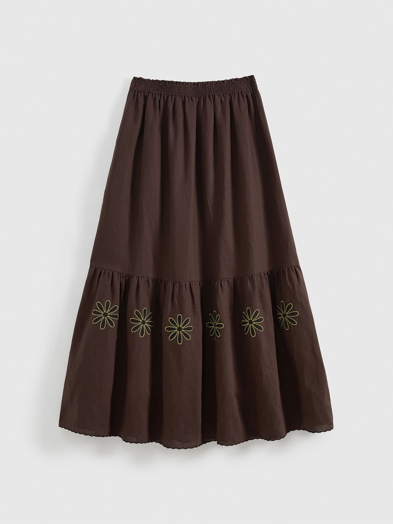 Irreecha Summer Capsule 2025 - Celebrate Everything. A playful yet refined sleeveless top that blends a soft A-line silhouette with hand-applied floral details. Designed with cutaway shoulders for a feminine and youthful feel, and finished with gold-thread floral appliqués and contrast scalloped embroidery at the hem. A back neck button ensures easy on and off. Fully lined in lightweight cotton-silk for added comfort.