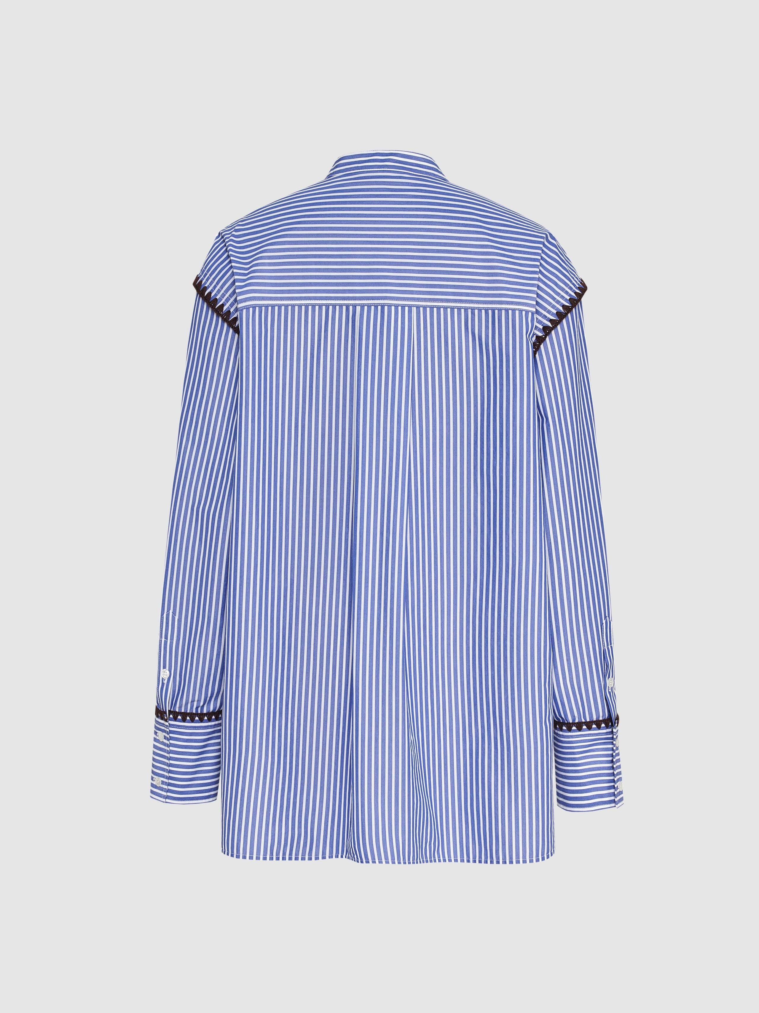 This Layered Gathered Striped Midi Skirt features an elastic waistband and side seam pockets for convenience and comfort. The exclusive striped fabric offers a classic pattern with vibrant colors. The A-line design, with a high-low hem and segmented panels, adds visual depth and a playful touch.