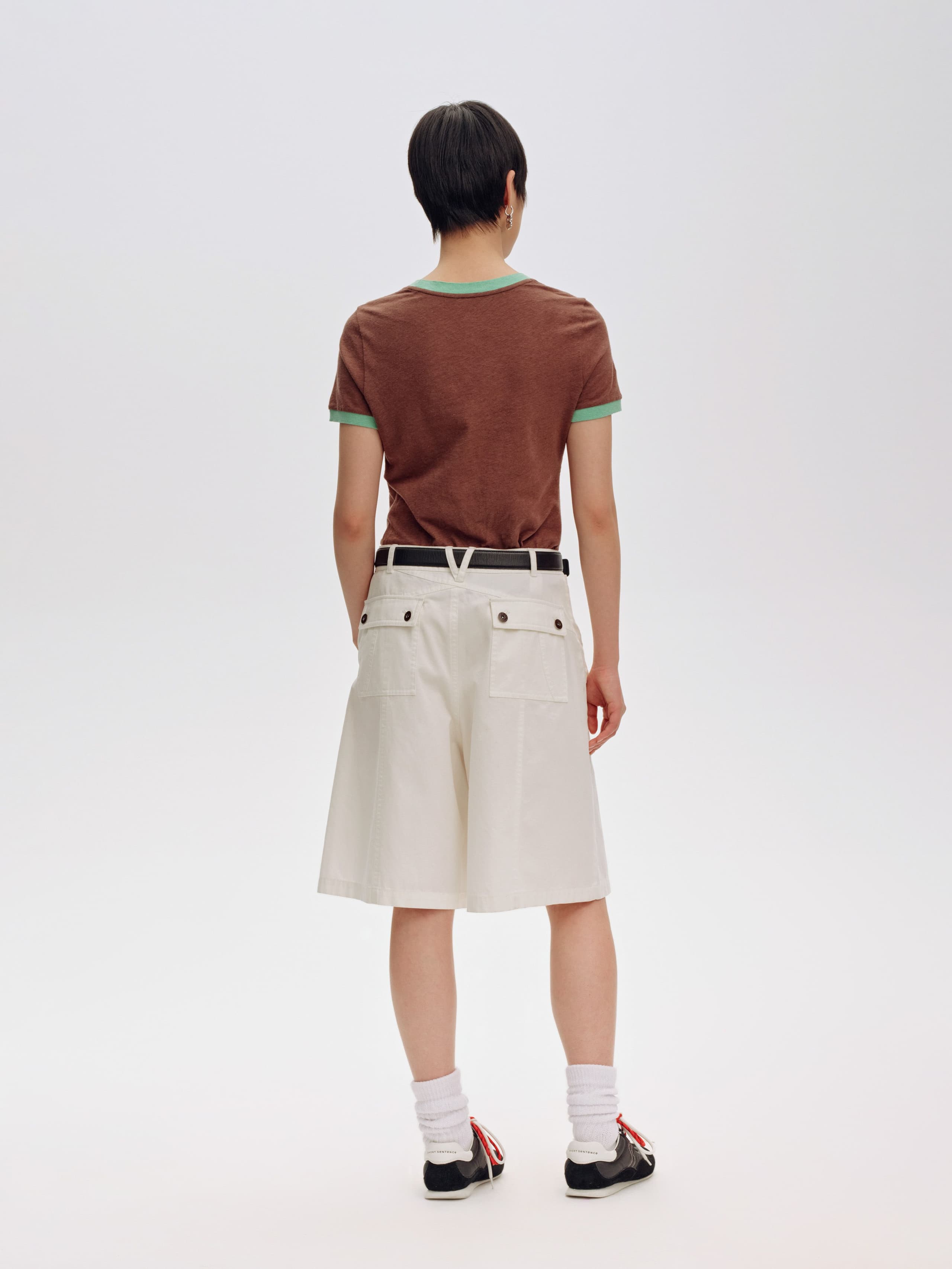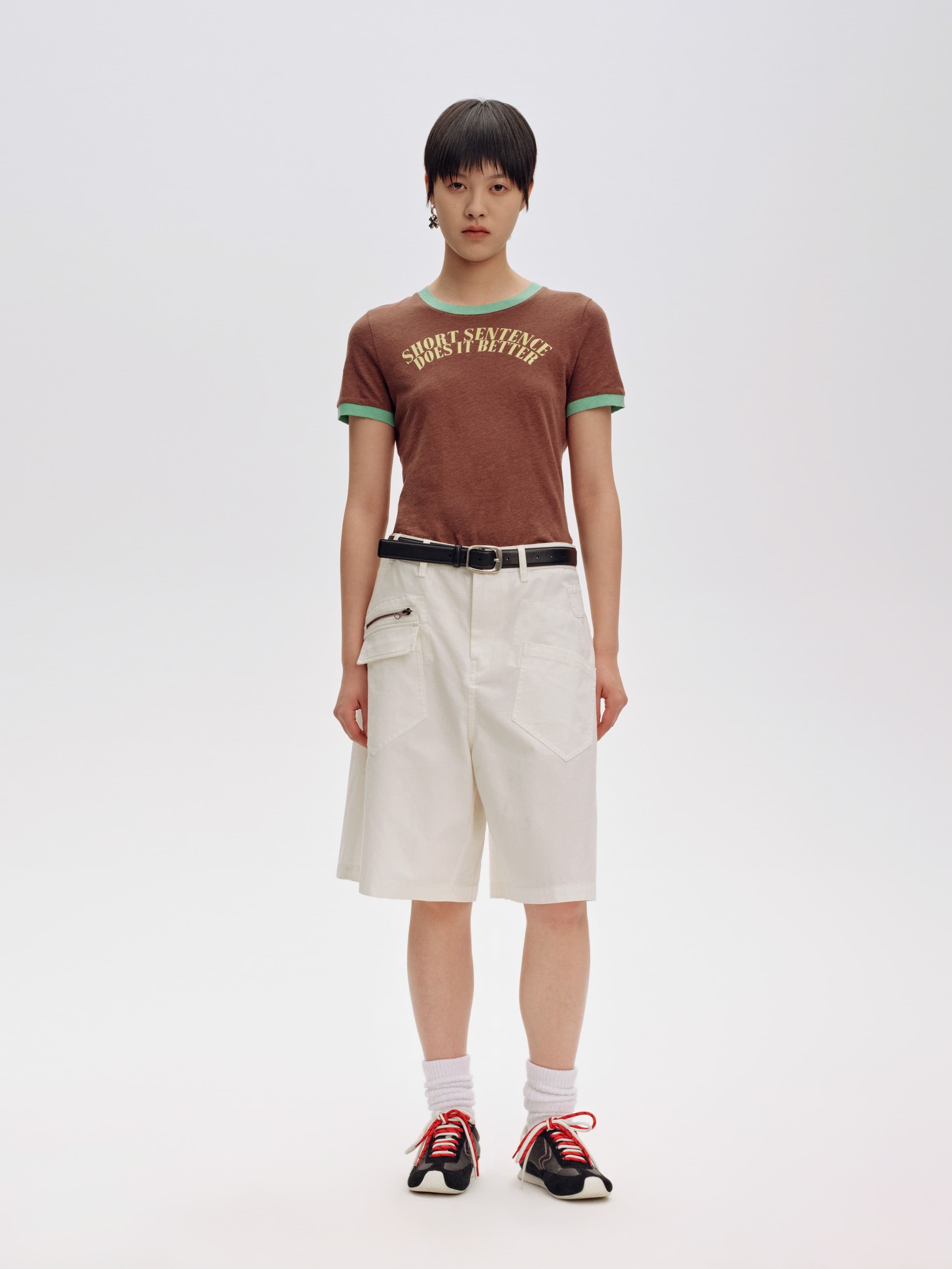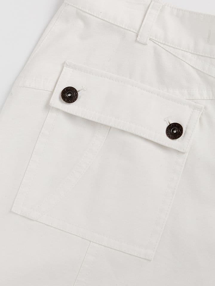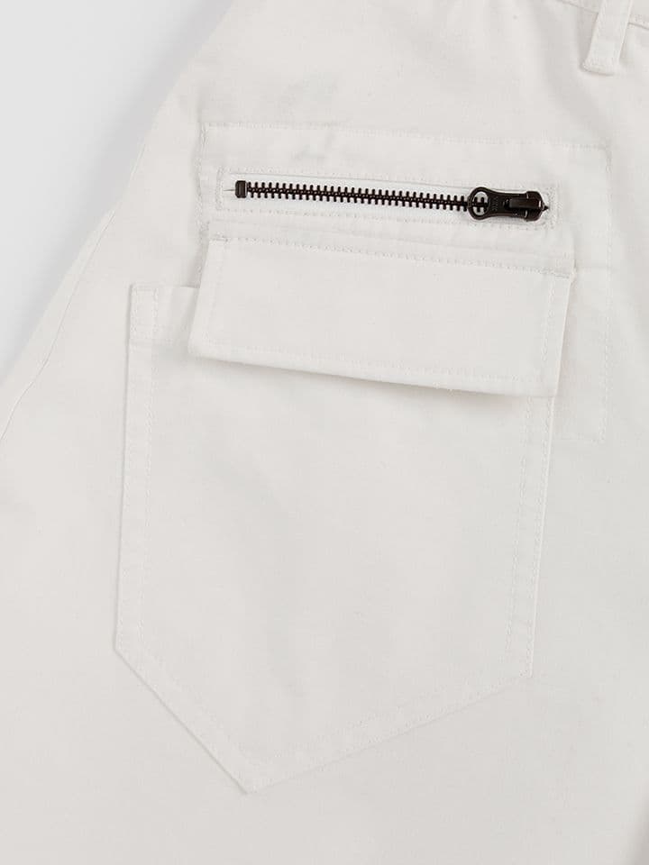 The Low-Rise Cargo Shorts are crafted from 100% washed cotton, offering a structured yet breathable feel. Designed with a relaxed wide-leg silhouette, these shorts feature utility-inspired cargo pockets for a functional touch. The garment-washed treatment enhances softness and comfort, while the printed interior lining adds a subtle detail.