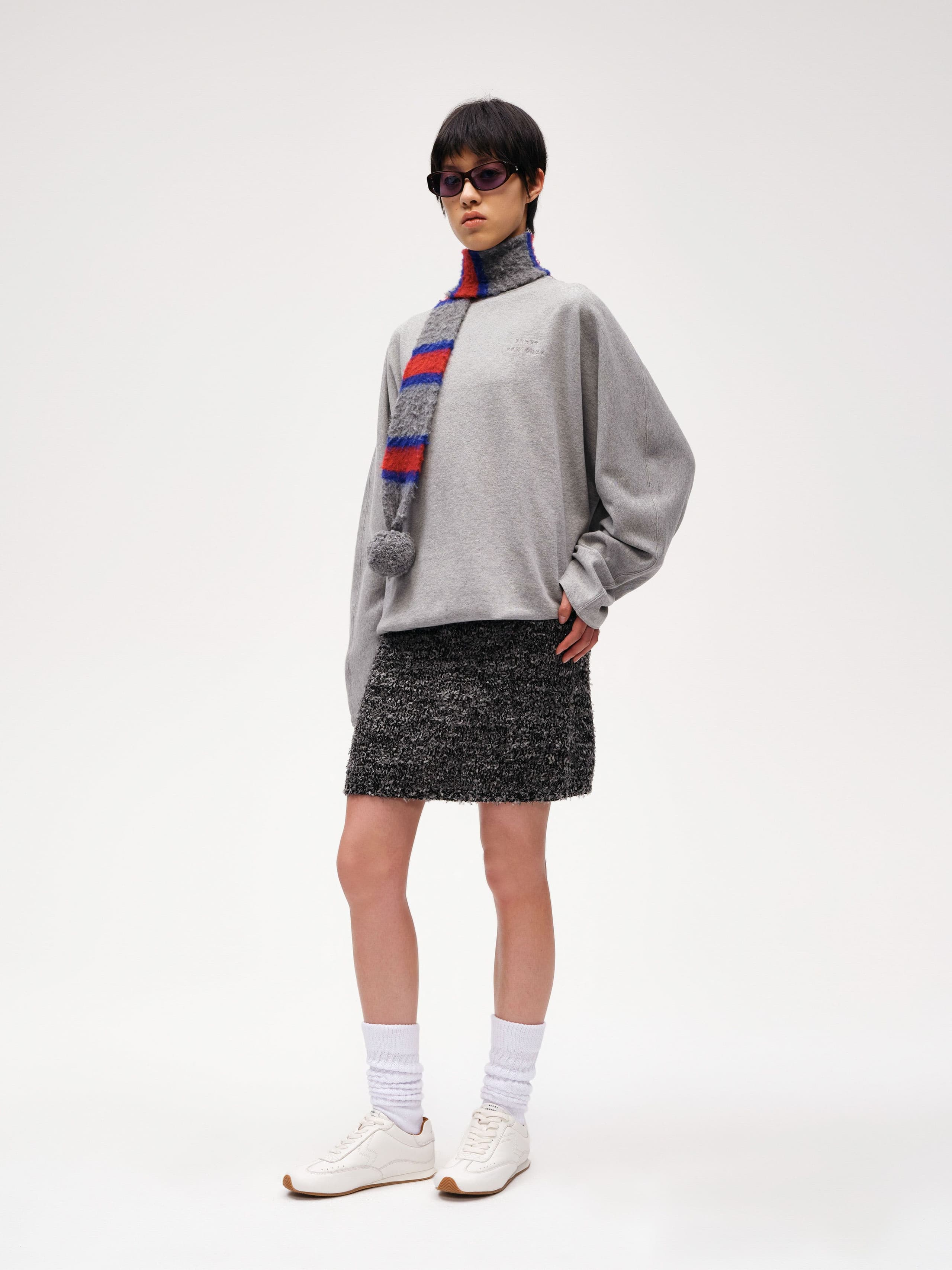 This Metallic Tweed Skirt is crafted from a blend of metallic-embellished yarn and cotton, offering a rich texture and a subtle golden shimmer. The fabric provides a lightweight and relaxed fit with natural elasticity. This skirt combines the freedom of an artist’s brushstrokes with the elegance of starlit skies.