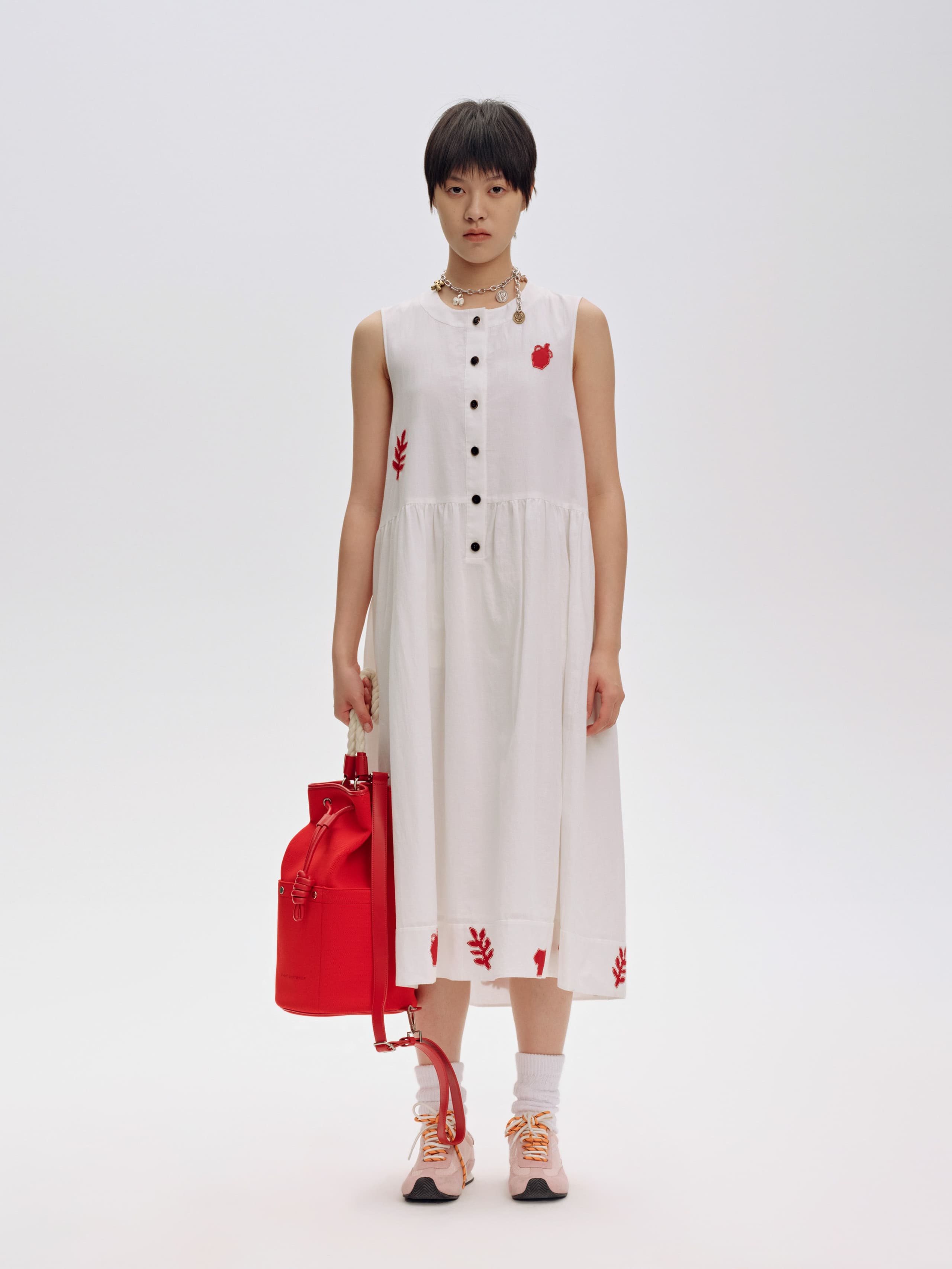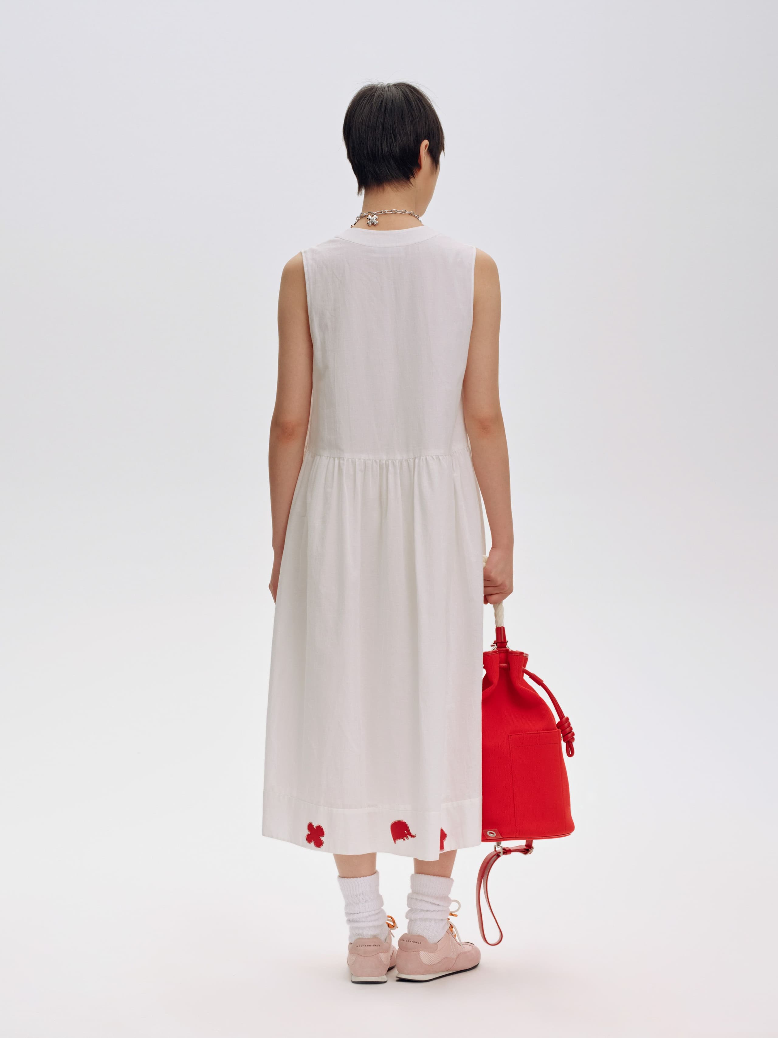 The Multicolor Patchwork Shirt Dress features a unique fabric mix, blending cotton, linen, and viscose for a breathable and textured feel. Designed with a short-sleeve A-line silhouette, it offers a relaxed yet structured fit. Colorful buttons along the front placket add a playful touch, while side pockets enhance everyday functionality.