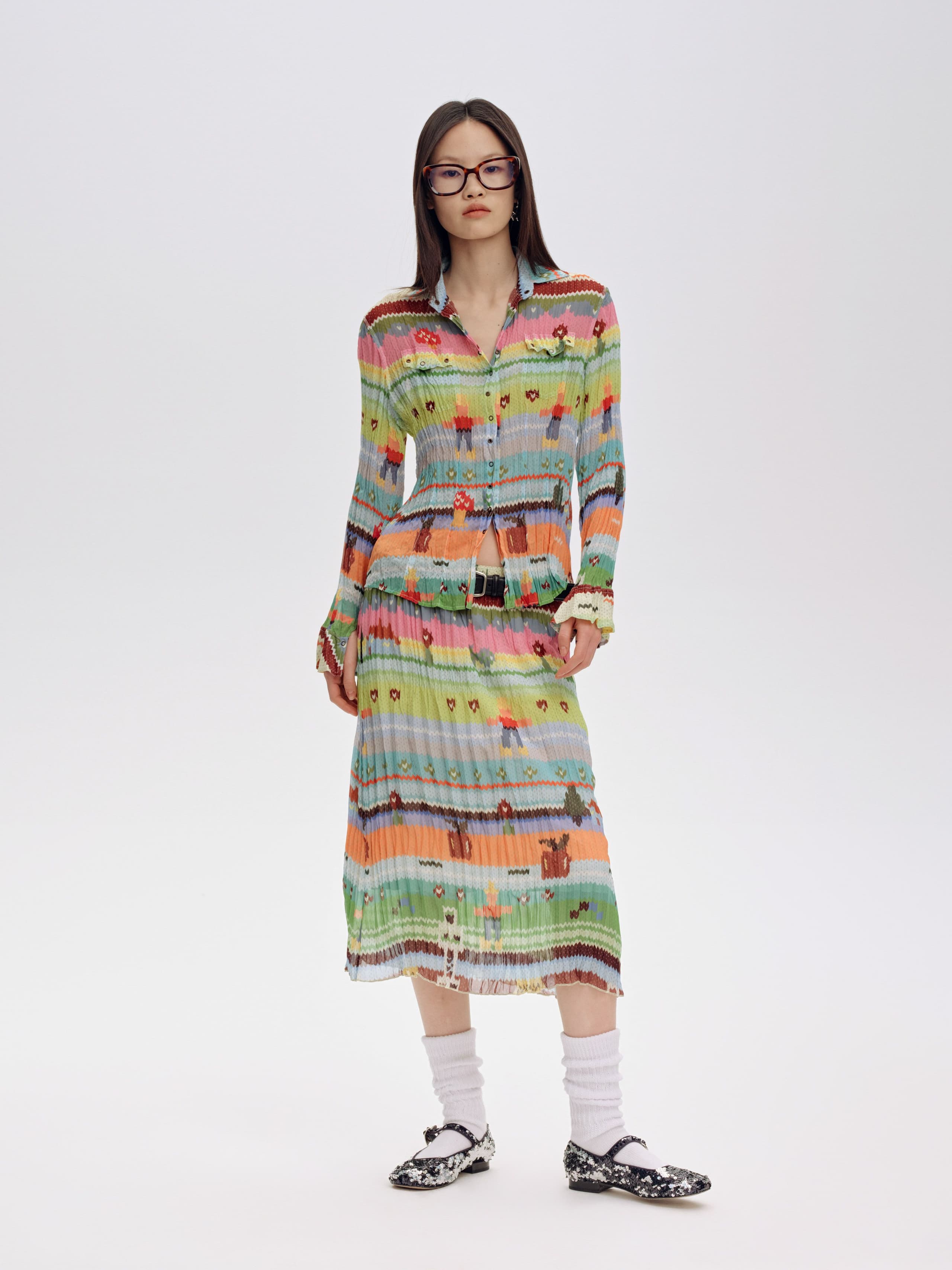 The Printed Mock-Layer Dress creates a layered look with a soft cotton top and a lightweight, pleated printed skirt.Designed for effortless styling, this faux two-piece silhouette combines comfort and visual depth, while the relaxed straight fit ensures easy movement.