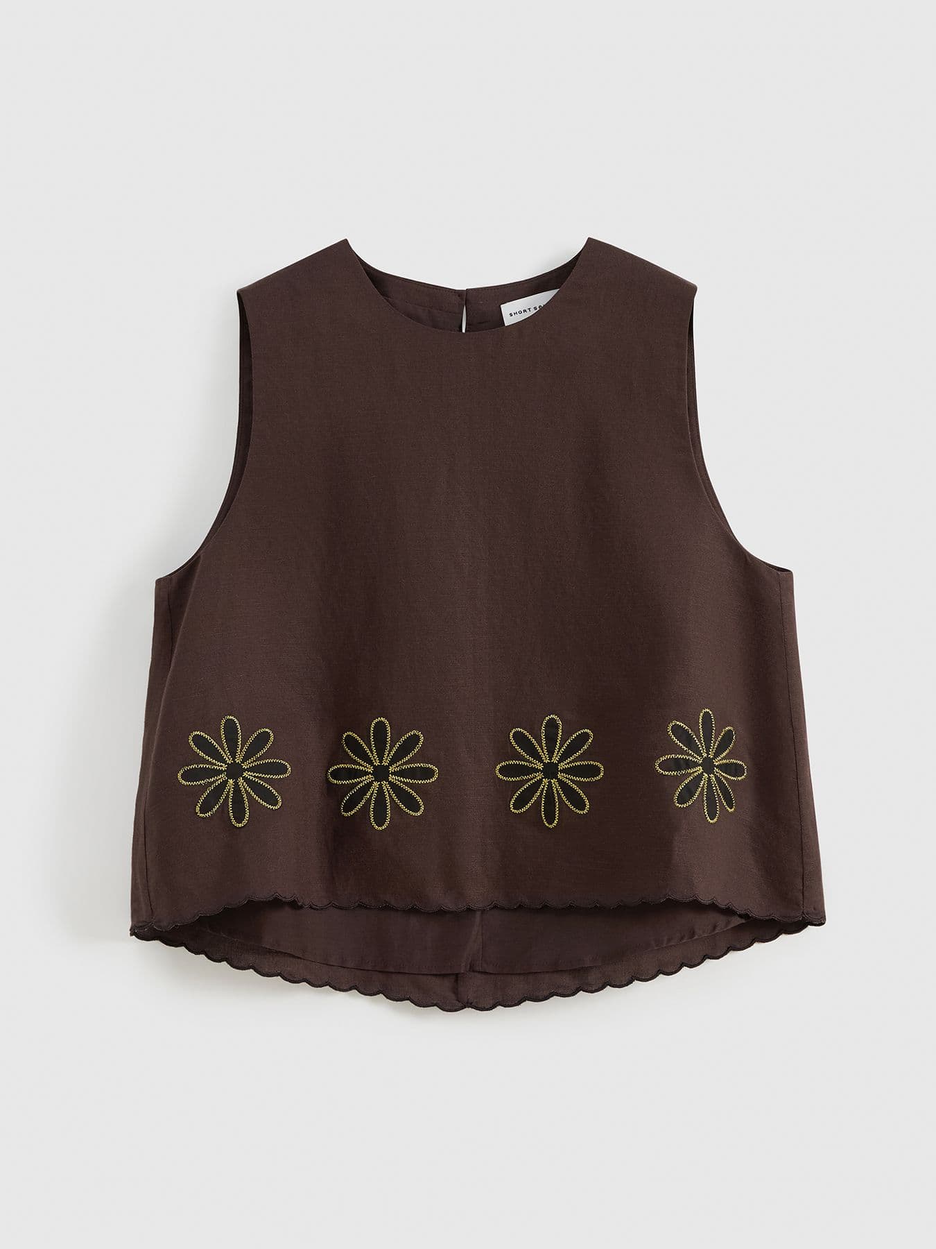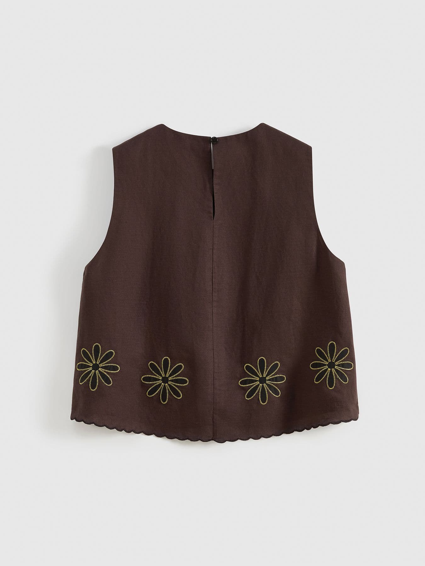 Irreecha Summer Capsule 2025 - Celebrate Everything. A breezy and romantic skirt designed for everyday ease. Made from a smooth, breathable linen-viscose blend, the straight-cut silhouette flatters with gentle structure and movement. Features a comfortable elastic waistband and gold-thread floral appliqué embroidery along the hem. Finished with a cotton-silk lining for added softness.