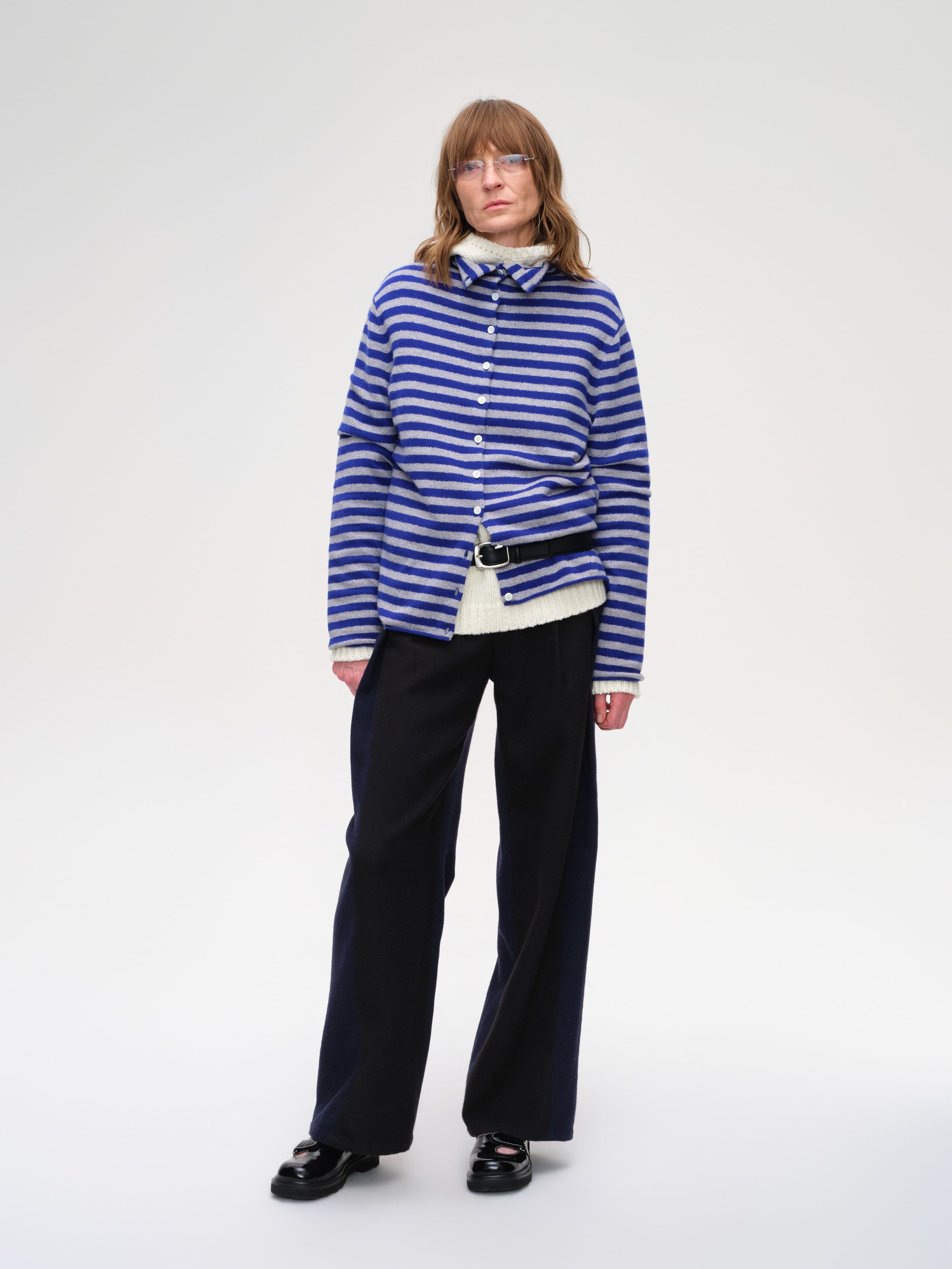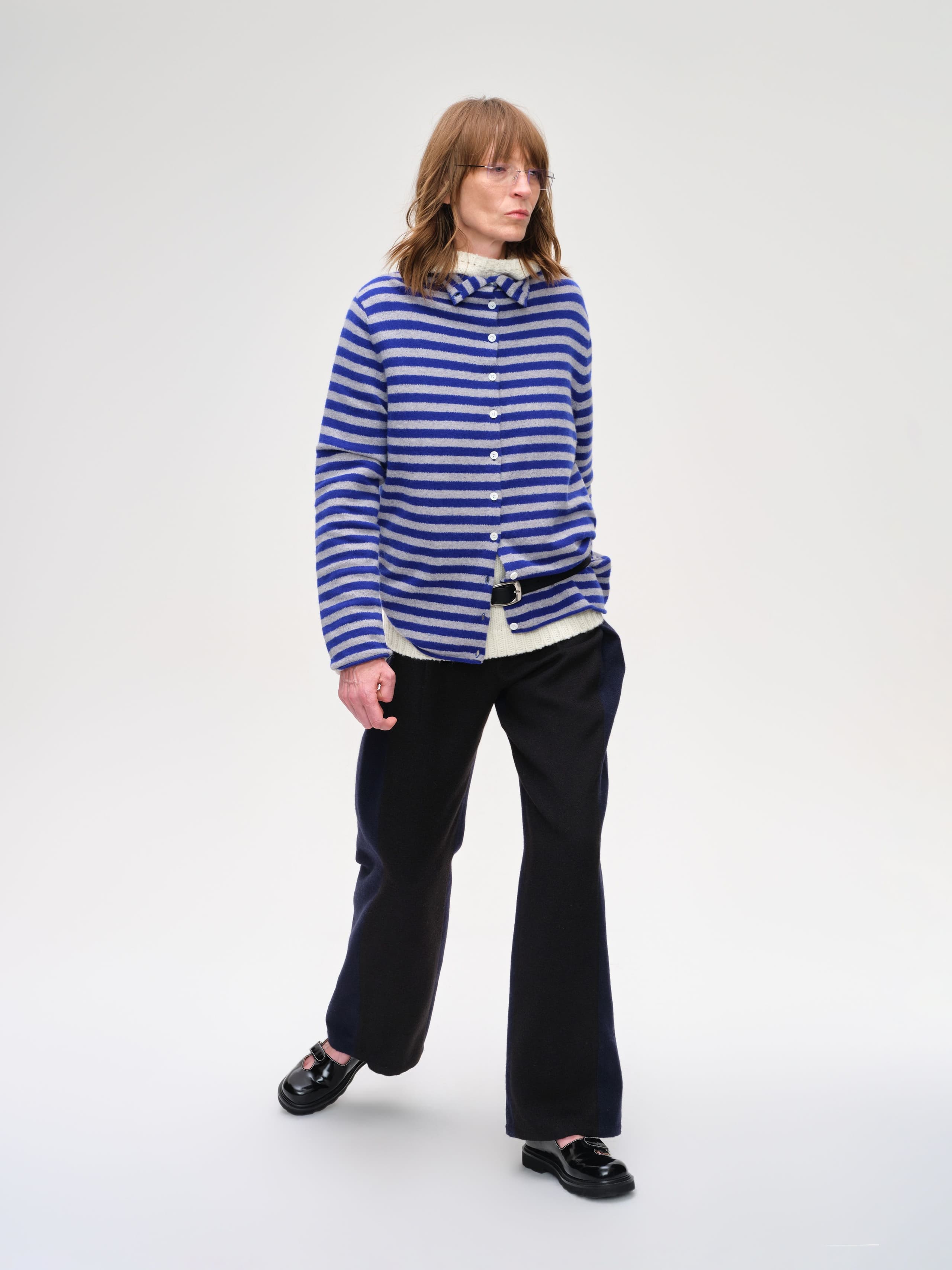 Crafted entirely from fine wool yarn, these striped knit pants combine clean solids with playful speckled details. The seamless one-piece knitting technique ensures ultimate comfort and a smooth fit, while the relaxed silhouette makes them versatile for everyday styling.